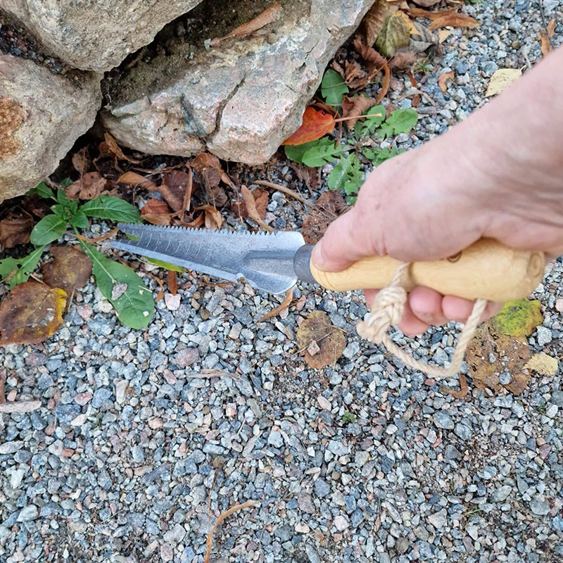 Den finslipade sidan kan användas för för att lirka växter ur krukan vid omplantering