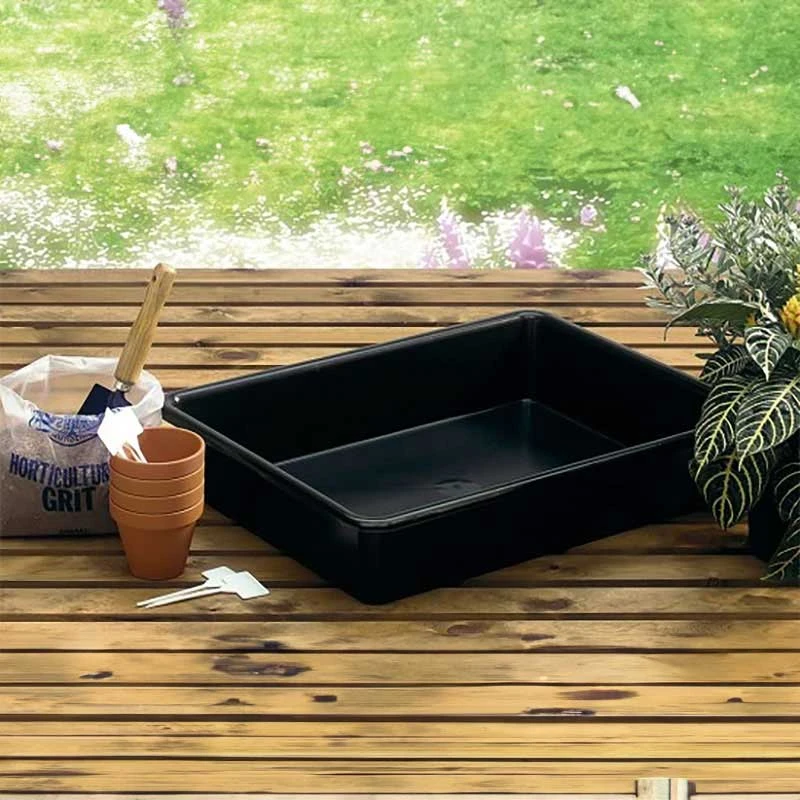 Några exempel är för att ställa krukor med växter på, skola om plantor på, blanda jord i mm.