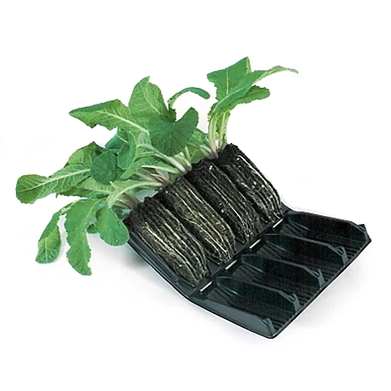 Förpackningen innehåller 32 celler bestående av 8 ’böcker’ med 4 sammansatta celler, ett brätte/hållare och ett genomskinligt lock som placeras över cellerna för att hjälpa till att hålla en fuktig miljö för plantorna.