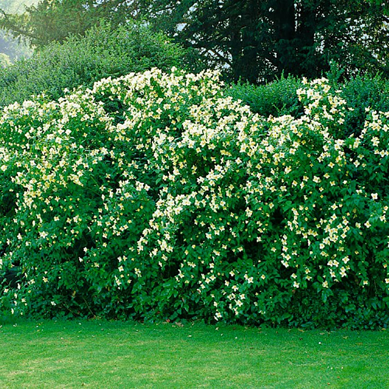 Doftschersmin passar perfekt som stor friväxande häck. De har ett upprätt, rundat växtsätt med gröna blad och blir översållad av enkla, ljuvligt doftande vita blommor i juni.
