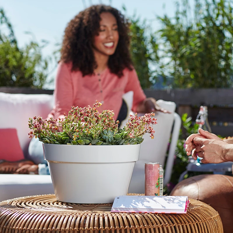 Skapa din egen ”green spot” på balkongen eller terrassen. Denna vackra eleganta blomskål har utformats speciellt för ditt att dekorera din uteplats. En behändig vattenbehållare i botten av lådan garanterar att växten kan lagra vattnet för torrare perioder. På så sätt kan du njuta länge av de vackra varma sommardagarna eftersom du vet att dina växter får allt de behöver.