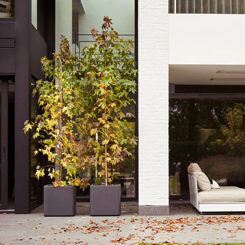 Minimalistisk kruka i fyrkantig design med dolda hjul för enkel förflyttning. Krukan anpassad för både inom- och utomhusbruk. Krukan är försedd med en förhöjd botten så att du inte behöver fylla på hela krukan med jord.
