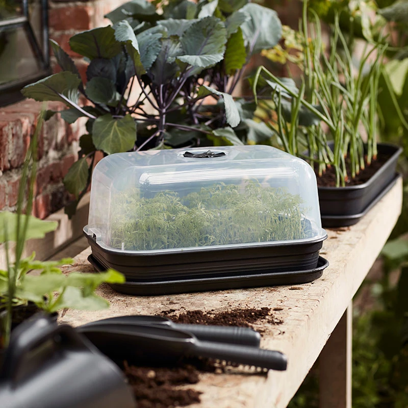 Kupan är utrustad med en praktisk ventil som gör att du kan reglera lufttillförseln och justera temperaturen. Dessutom förhindrar kupan även att skadedjur tar sig in till frösådden och de unga plantorna.
