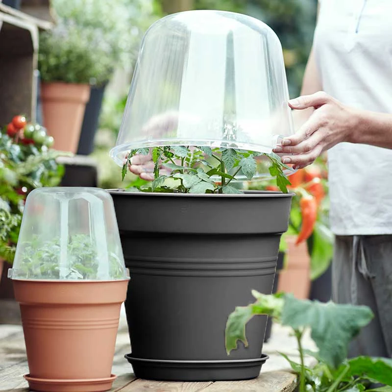 Låt dina plantor, sticklingar och hemodlade grönsaker växa ännu snabbare med minidrivhus från Elho’s ‘Green Basics’-serie.