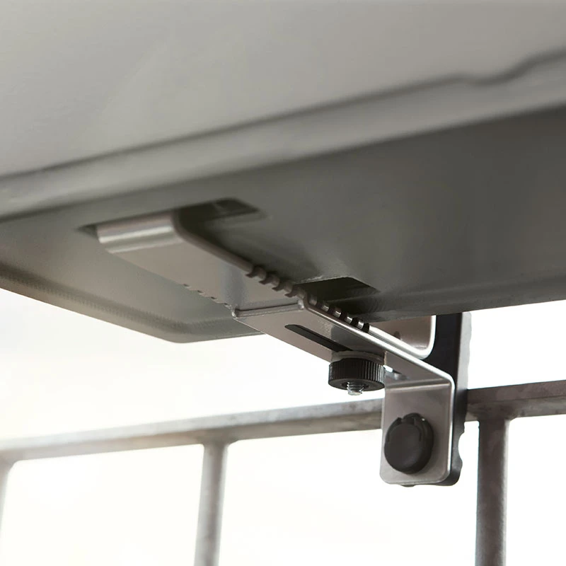 Konsolerna greppar balkonglådan i de dolda hålen underifrån så att de blir helt osynliga framifrån. Lämplig för alla vanliga räcken: från 4 till 7 cm. Konsolerna går att justera med distanskontroll för perfekt placering i rät linje.