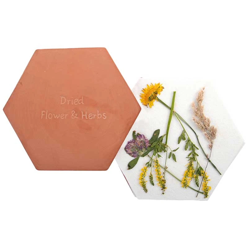 Att torka och pressa växter på traditionellt vis kan ta upp emot tre veckor innan växten har torkat klart men med den här växtpressen i terrakotta, för mikrovågsugn tar det endast några minuter.