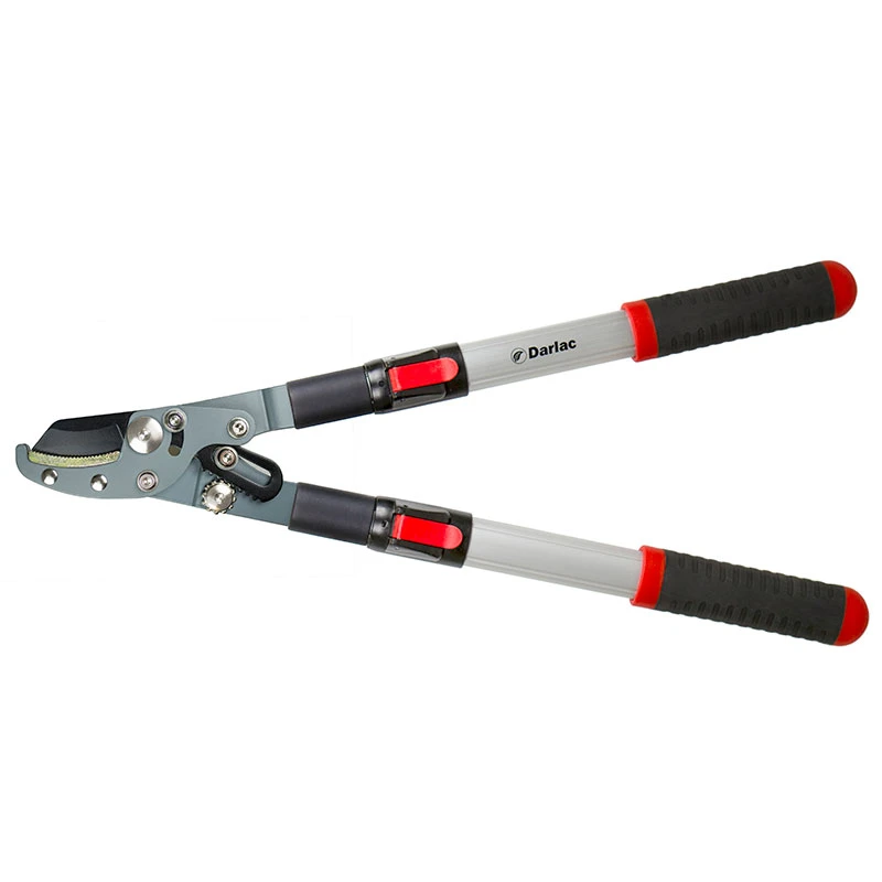 Denna kraftfulla beskärningssax med telekophandtag har en mycket smart utväxlingsmekanism med dubbel action som bidrar till ökad skärförmåga och gör de olika beskärningsjobben i trädgården enklare.