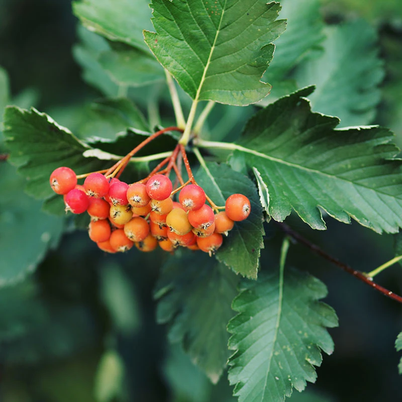 Den får vita blommor i maj-juni och senare dekorativa orangeröda bär.