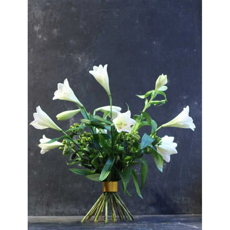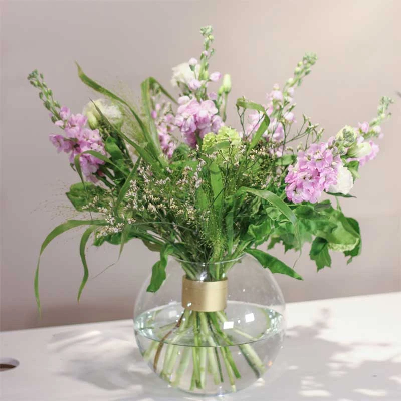 - Placera blommorna på önskat sätt genom båda hålen till önskad längd. Lägg ned buketten och klipp stjälkarna som du önskar.