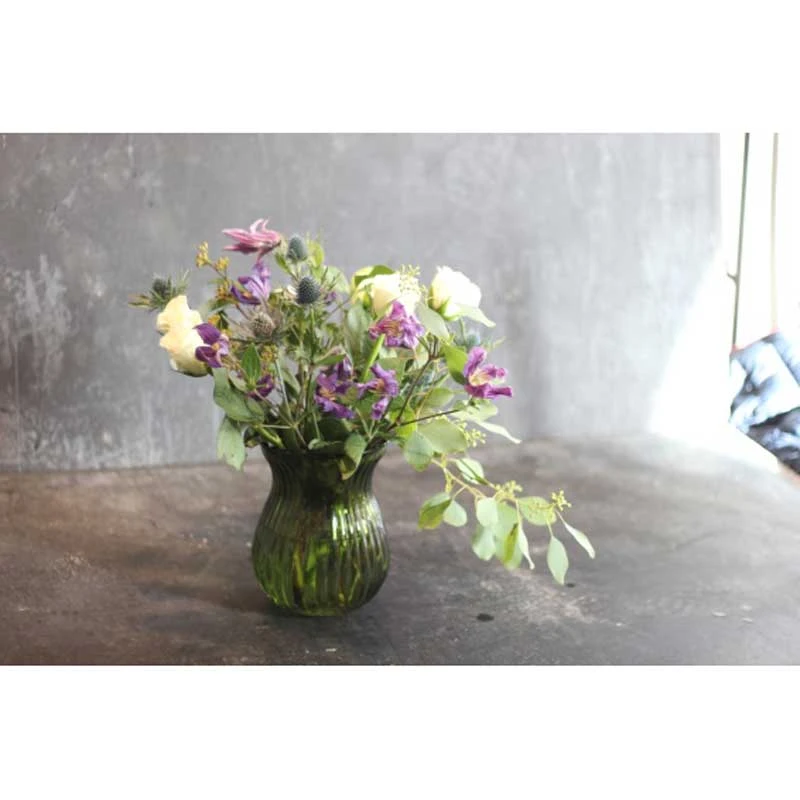- Placera blommorna på önskat sätt genom båda hålen till önskad längd. Lägg ned buketten och klipp stjälkarna som du önskar.