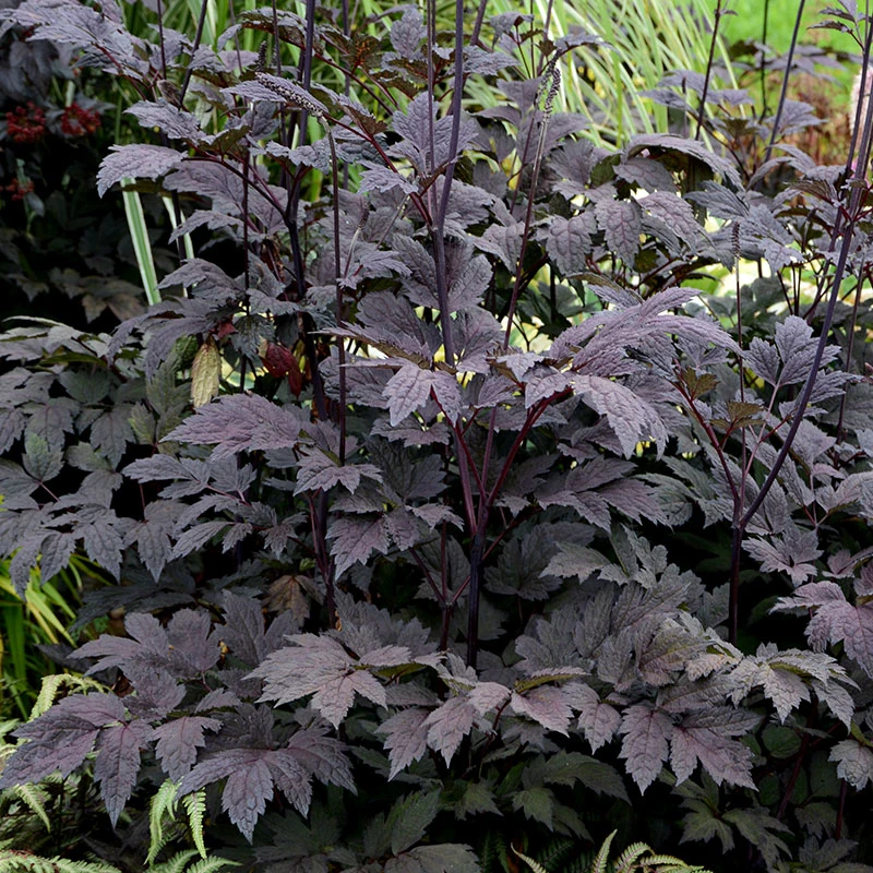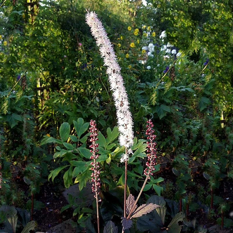 Höstsilverax är med sina mäktiga gräddvita spiror mot de mycket mörka purpurfärgade blad verkligen något extra. Utmämnd till ‘Årets perenn 2018’