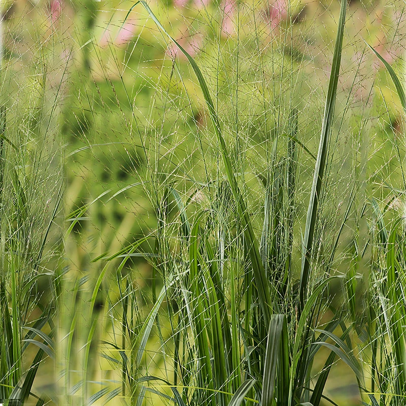 Blommar med stora skira vippor på höga strån som rör sig lätt i vinden.