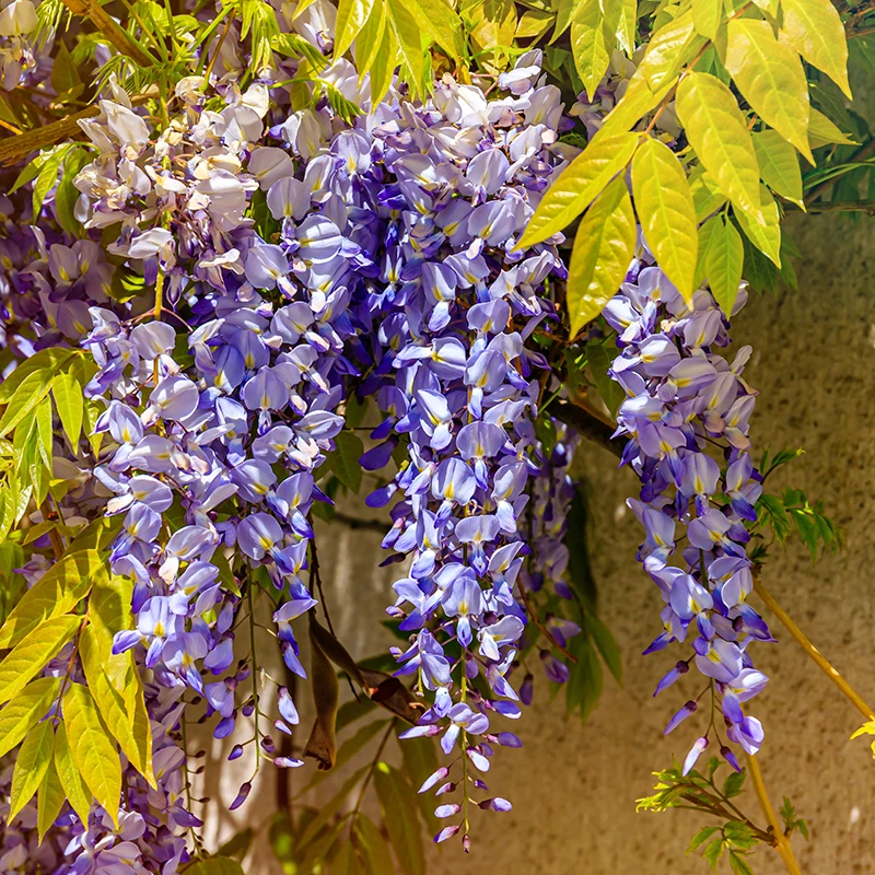 Japansk blåregn är kraftigväxande sort, som passar utmärkt för mindre platser. Blommar med doftande lilablå blommor i hängande klasar. Utmärk för att växa mot pergola eller vägg. Plantera gärna i soliga och vindskyddade lägen då den är av känsligare sort eller placera i kruka för att kunna övervintra i kallare delar av landet. Plantera i näringsrik och väldränerad jord. Beskärning sker på vintern januari-februari och efter sommaren juli-augusti.