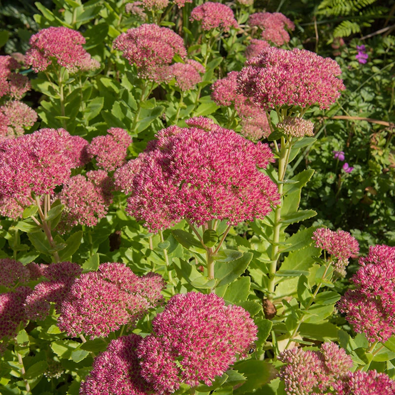 Herbstfruede är en lättodlad perenn med feta, succulenta blad och stora rosa blomklasar.