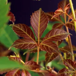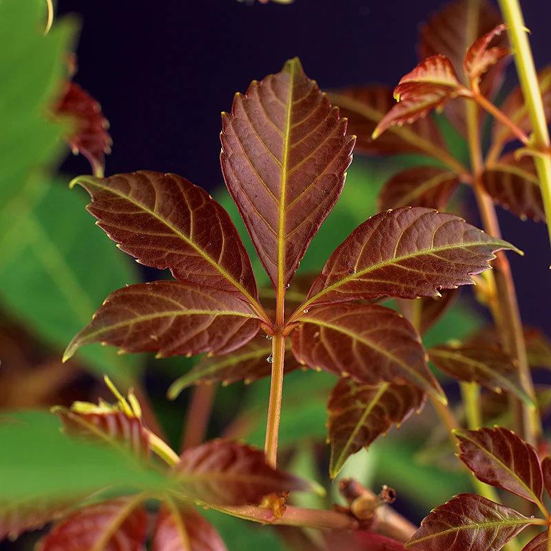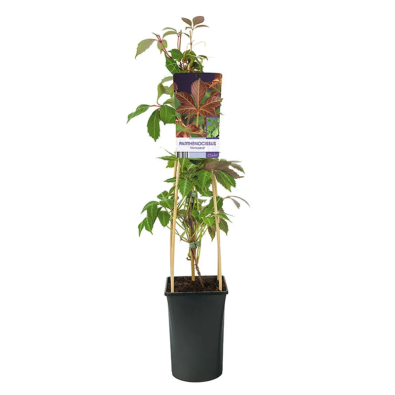 Parthenocissus henryana är en vinväxt som passar utmärkt att täcka stora ytor snabbt. Växten introducerades i Kina 1894. Fantastiska mörkgröna eller bronsfärgade blad med silvriga bladnerver. Mycket populär för sina färgstarka rödrosa blad på hösten och de små blå-svarta dekorativa bären på hösten. Passar utmärkt att täcka väggar och staket men kan även lätt odlas i en kruka.