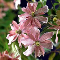 Klematis ‘Broughton Star’ är en härlig klematis i montanagruppen med halvdubbla djuprosa blommor som blommar från sen vår till tidig sommar. Unga blad är bronsfärgade som blir mörkgröna när de är mogna. Kan användas som marktäckare. Passar mot vägg, träd, mur eller spaljé. Kan odlas i kruka.