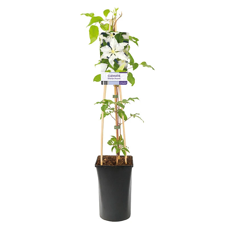 Klematis ‘Gladys Picard’ är en klematis med stora (10-15 cm) rosvita blommor, som blommar under lång period. På en soligt plantering plats kan det bli helt vita blommor. Passar perfekt att odla mot vägg, träd, mur eller spaljé.