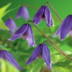Klematis ‘Helsingborg’ blommar tidigt med blåvioletta stora klockformade blommor från april till maj på gamla rankor. Passar perfekt att odla mot vägg, träd, mur, spaljé eller som marktäckare.