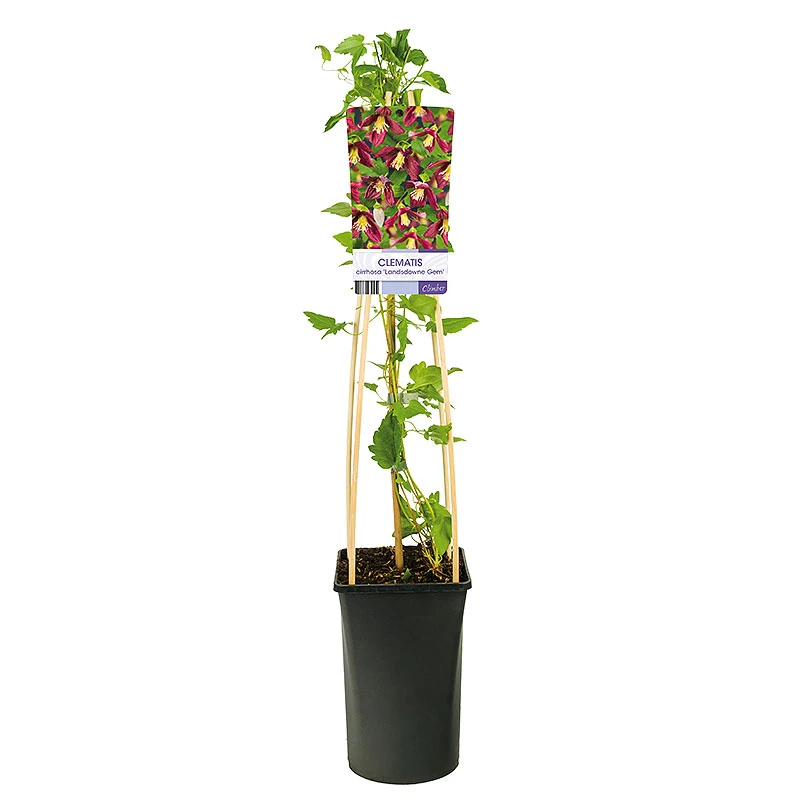 Klematis ‘Landsdowne Gem’ är en vintergrön och vinterblommande clematis. Sortens ursprung från södra Europa. Blommar med rödviolett/rosa blommor från november till februari med citrusliknade doft. Kan odlas i kruka. Måste skyddas från starka vindar.