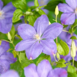 Klematis ‘Mrs Cholmondeley’ blommar med stora (14-18 cm) lavendelblå blommor med bruna ståndare i mitten under juni-september. Passar perfekt att odla mot vägg, träd, mur eller spaljé. Trivs bäst i skyddad läge.