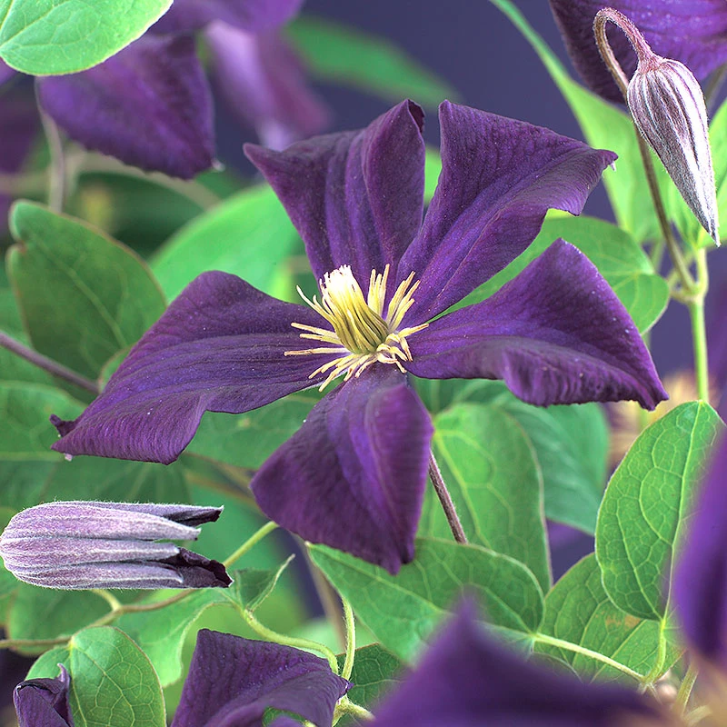 Klematis ‘Romantika’ är en estländsk storblommig klematis. Blommar med stora mörkvioletta, nästan svartvioletta, stora blommor som är ca 10- 15 cm i diameter, med gulgröna ståndare. Passar perfekt att odla mot vägg, träd, mur, spaljé eller i kombination med klätterrosor. Beskärning sker på årets rankor under senhösten eller tidig vår till 20 -50 cm över marken. Skydda rothalsen mot solen