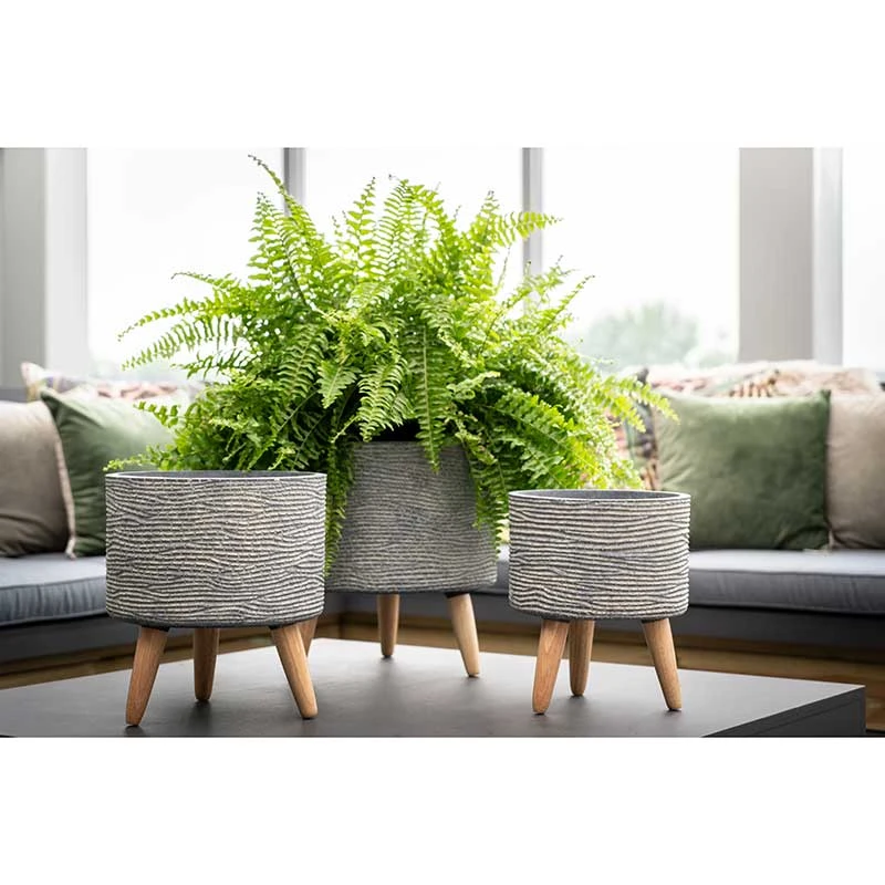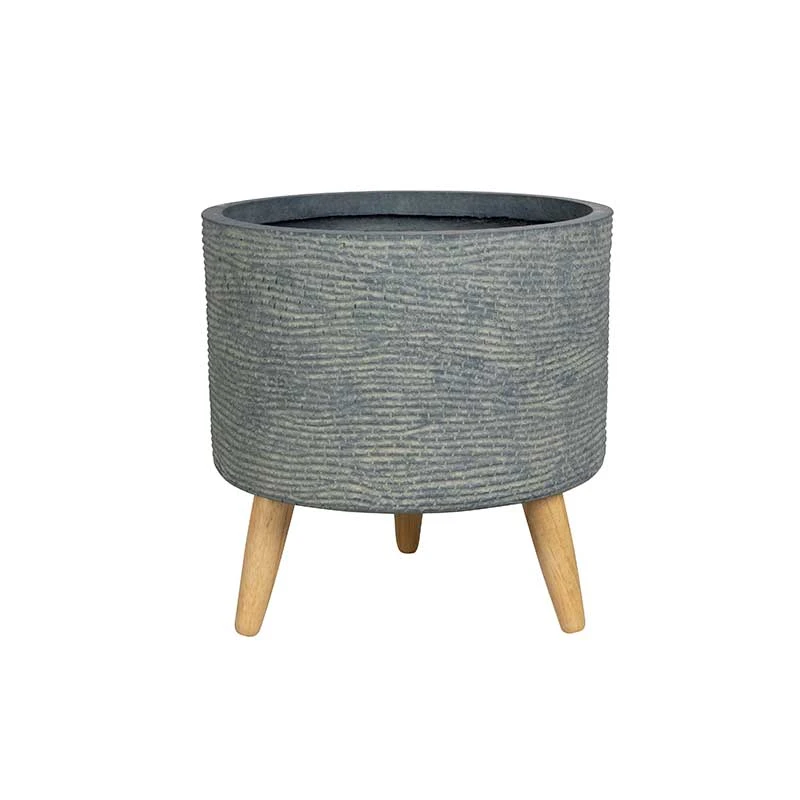 Kruka med modern design. Riva är handgjorda krukor av cement med ben av trä.