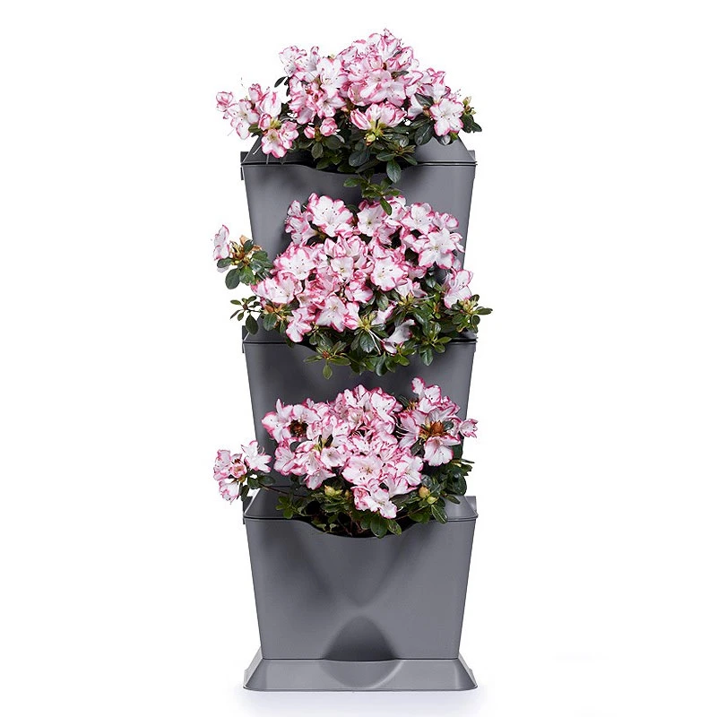 Designen gör att det är enkelt att vattna och eventuellt överskottsvatten har fri passage för att dränera ur krukan och hamnar i uppsamlingsbrickan längst ner.