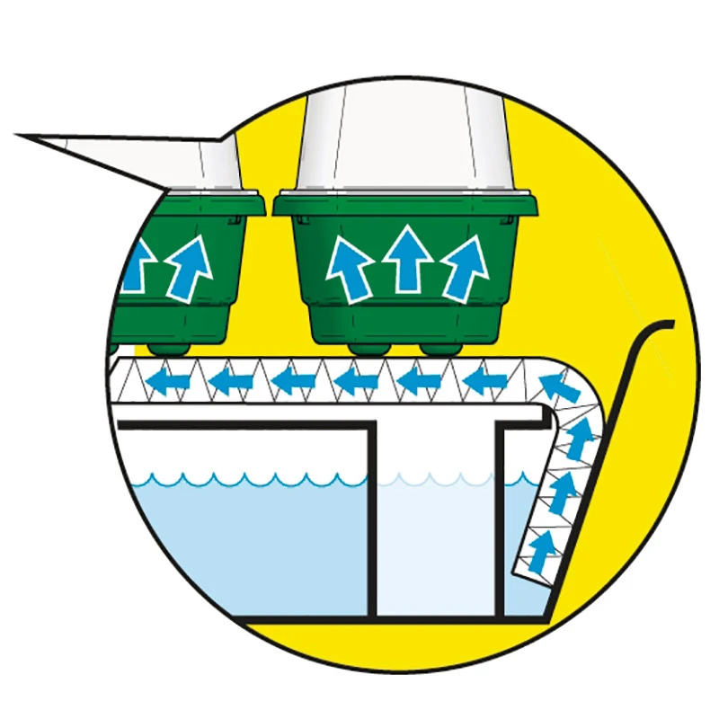 Plantbrickan innehåller en vattenreservoar med kapillärmatta som låter växterna själva dra upp så mycket vatten de behöver i takt med att de växer till.