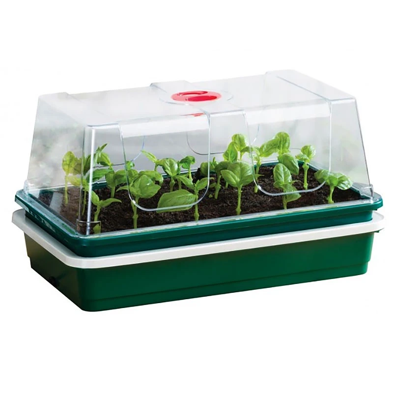 Miniväxthus med undervärme i praktiskt, kompakt storlek med 10-watts uppvärmd platta.