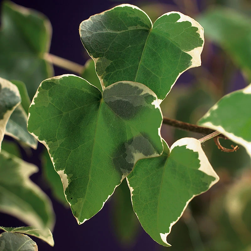 Hedera helix ‘Glacier’ är en härlig vintergrön sort med små trekantiga gröna blad som har oregelbundna stora grå fläckar och vita kanter. Med sitt utseende av grågröna blad påminner den lite om frost effekt. Grenar är röda. Sorten är snabbväxande och passar utmärk att ha i en kruka på balkong eller terrass. Grågröna bladverk passar utmärkt för skuggiga områden i din trädgård. Den kan användas för att snabbt täcka alla sorters ytor.