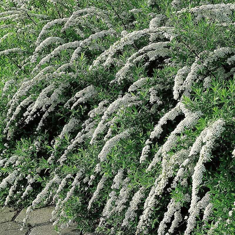 En vacker rikligt vårblommande buske. Passar som friväxande häck med sitt breda tätväxande bladverk och hängande grenar, som i maj bär många små vita blommor. Bästa utveckling får busken om den planteras i näringsrik, mullrik och väldränerad jord gärna i soliga lägen. Förutom detta är det en lättskött buske och beskärs bara vid behov efter blomning. Höjd ca 1-1,5 meter och bredd 1,2-1,8 meter.