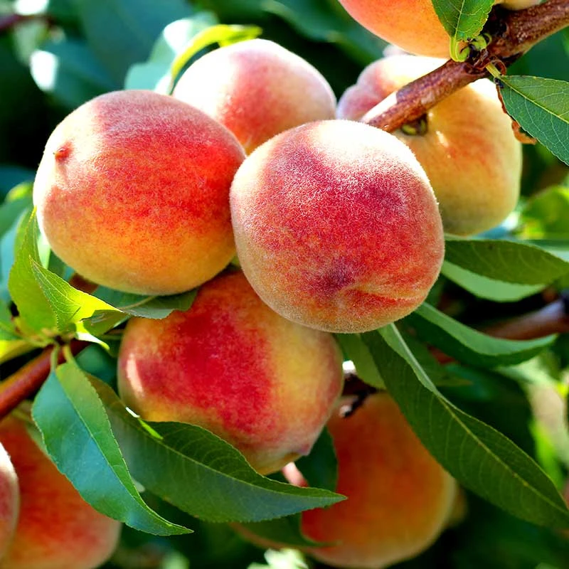 Persika ‘Redhaven’ har medelstora gulröda frukter.