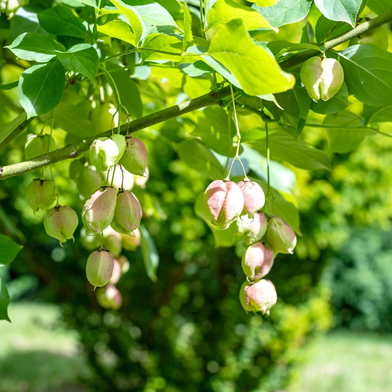 Efter blomming utvecklas dekorativa frökapslar. Vackra parbladiga blad och vacker stam som blir vitstrimig lite som som strimlönn.Trivs bäst på en varm plats i mullrik, genomsläpplig jord i sol till halvskugga.
