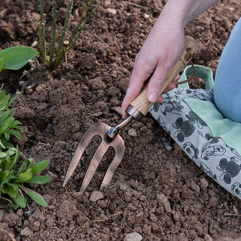 Plantergaffel för vuxna av hög kvalité i rostfritt stål med en fin kopparfinish.