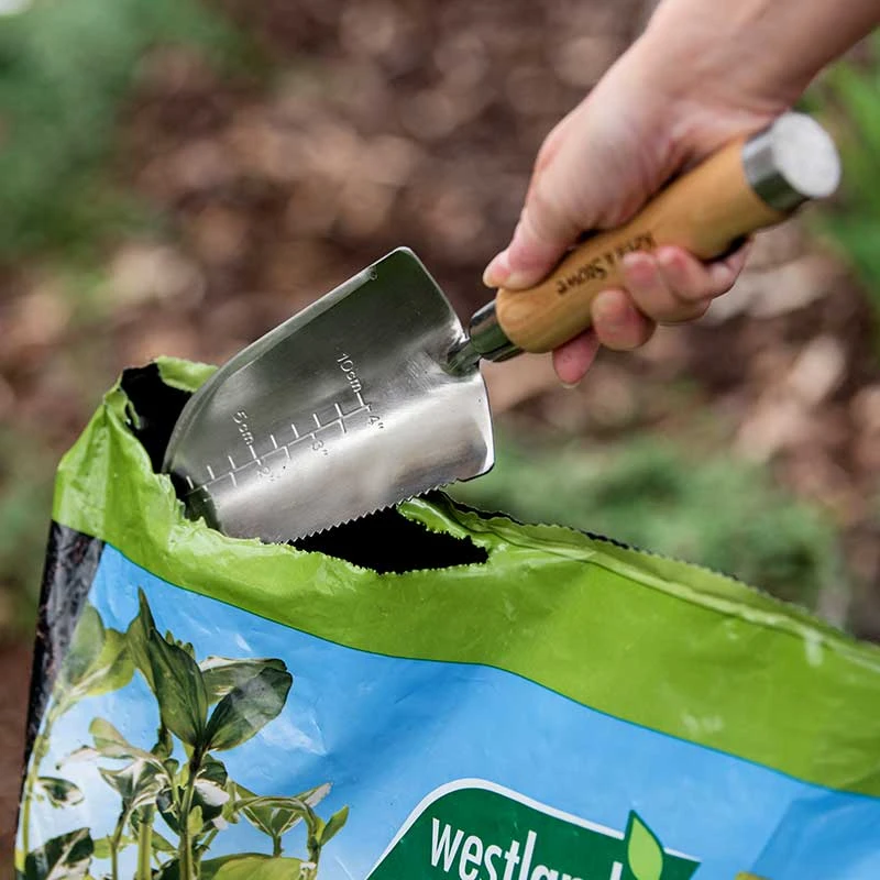 Planteringsspade tillverkad i rostfritt stål av hög kvalitet och av vackert FSC®-certifierat ask.