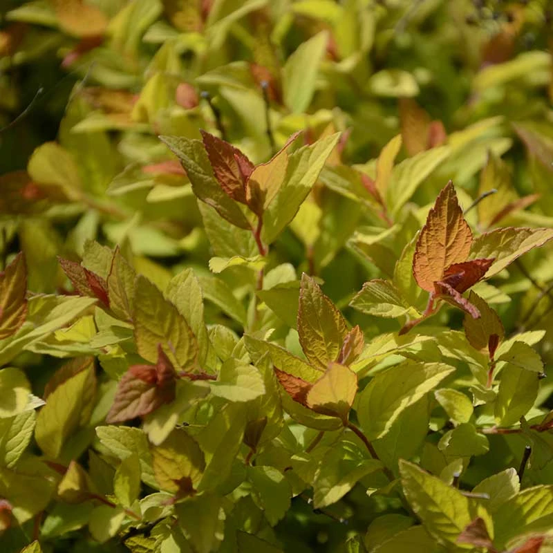 Praktspiraea ‘Firelight’ är en kompakt buske med vackra bladfärger. På våren kommer orangeröda blad som övergår till gulgrönt och på hösten kommer flammade röda nyanser fram. Under försommaren kommer mörkrosa (purpurröda) blommor. Sorten passar för plantering i grupper, stenparti, låg häck eller kantplantering. Lättodlad sort.