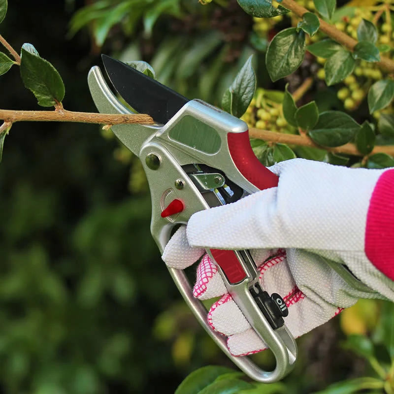 Sekatören har en utväxling med spärrmekanism för beskärning med minsta möjliga ansträngning. Skär av med ett enda klipp.