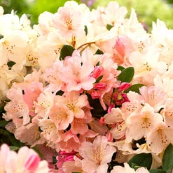 Blommor som sagolikt skiftar i rosa, aprikos, crème och vitt för ett romantiskt varmt och magiskt intryck. De kraftiga och välfyllda blomsterklasarna som omfamnas av det täta och frodiga vintergröna bladverket gör den till en riktig drottning i trädgården. Busken är tät, kompakt, lågväxande för både större och mindre rabatter där man vill ha en intensiv rododendronblomning och frodigt mustigt välfyllt växtsätt. Sorten är känd för sin vitalitet härdighet och överdådigt utsökta blomning. En perfekt present eller gåva till trädgårdsälskaren eller varför inte själv skapa dig en egen blomsterprakt. Plantera i torvblandad porös surjord och täck marken för att förhindra uttorkning.