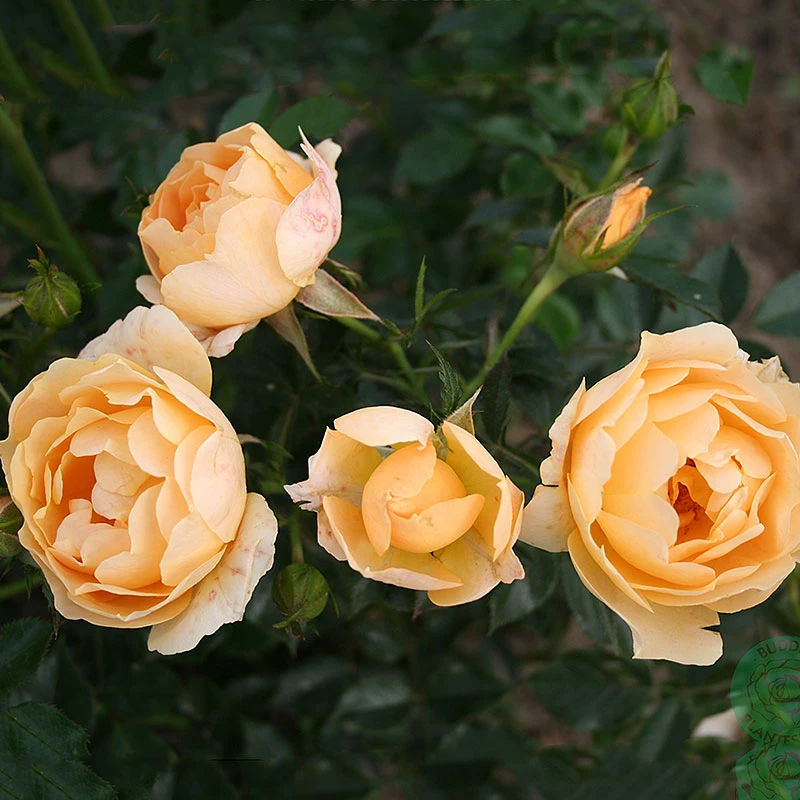 Marktäckande buskros ‘Amber Cover’ har tätt och utbrett växtsätt. Ca 40 till 60 cm hög. Bladen är blankt mörkgröna. Blommar med medelstora, halvfyllda, bollformade, aprikos eller ljust bärnstensgula blommor. Doften är vildrosliknande. Blommar juni-oktober. Underbar marktäckare. Trivs bäst på en solig växtplats. För bästa utveckling placera den gärna i näringsrik, mullrik och väldränerad jord. Passar att plantera i rabatter med andra rosor som marktäckare, som låg häck eller i en kruka. Beskär på våren.