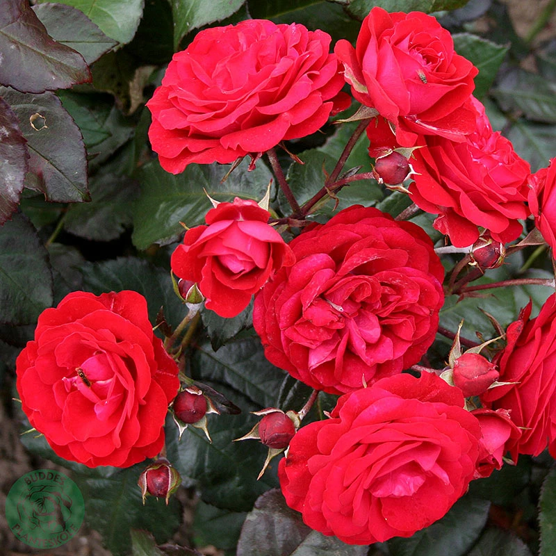 Rosa ‘Europeana’ blommar med stora, halvfyllda till fyllda sammetsröda blommor som sitter i stora klasar. Växtsätt är kraftig och välförgrenad. Sorten kommer att bli ca 60-80 cm hög. Bladen är mörkgröna med inslag av brons och mycket blanka. Doften är svag och kryddig. Blommar juni-oktober. Plantera gärna i näringsrik, mullrik och väldränerad jord. Beskär på våren. Kan planteras som rabattros både som solitär eller i grupp. Används även i krukor eller urnor.