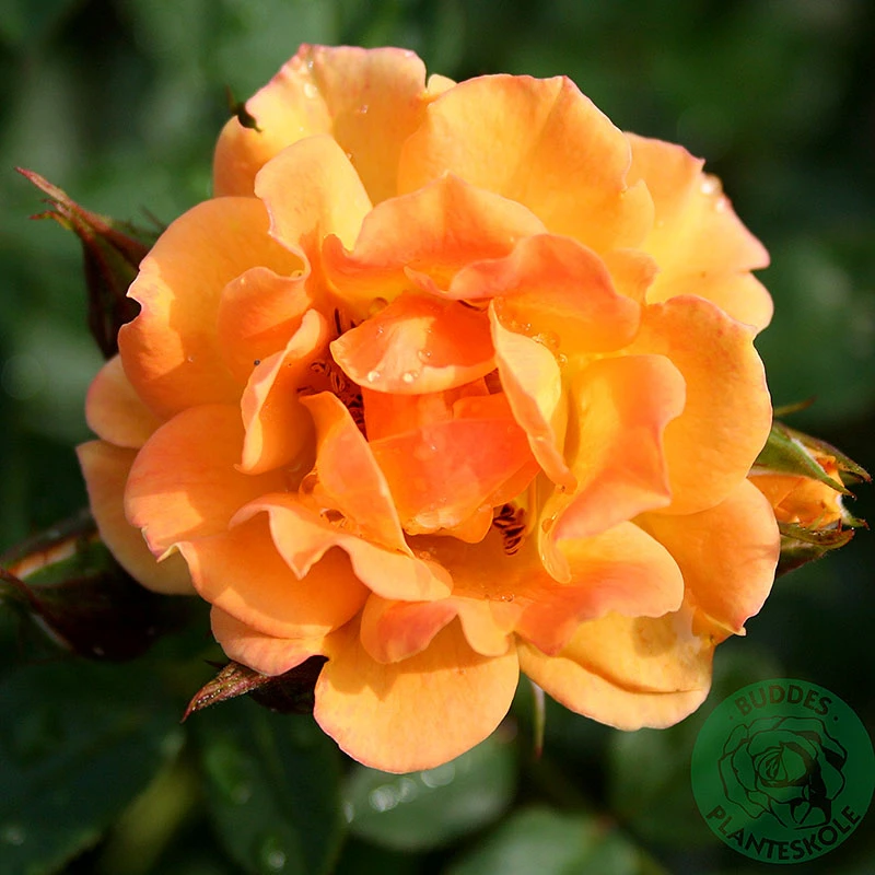 Rosa ‘Flaming Cover’ är en marktäckande buskros med tätt och brett upprätt växtsätt. Bladverket är blankt, läderartat och grönt. Blommar med medelstora, halvfyllda, mörkgula blommor med orangegula nyanser, som sitter i stora klasar. Doften är svag. Blommar remonterande från juni till oktober. Trivs bäst på en solig växtplats. Passar att plantera som marktäckare, som låg häck eller i kruka. Beskär på våren. Underbar att ta in som snittblomma. För bästa utveckling placera den gärna i näringsrik, mullrik och väldränerad jord.
