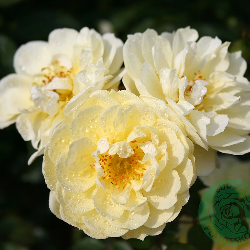 Rosa ‘Golden Cover’ är en marktäckande buskros med kompakt och brett växtsätt, som blir ca 40 till 60 cm hög. Bladverket är mörkgrönt och glänsande. Blommar rikligt med medelstora, halvfyllda, skålformade gula/guldgula blommor som sitter i stora klasar från juli till oktober. Doften är stark, söt, fruktig och påminner doft av citron. Passar att plantera som marktäckare, som låg häck, i en kruka eller framkanten på rabatten. Beskär på våren. För bästa utveckling placera den gärna i näringsrik, mullrik och väldränerad jord.
