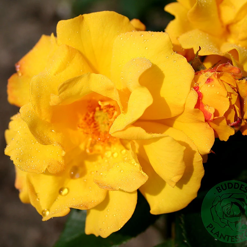 Rosa ‘Goldmarie’ blommar med medelstora, fyllda, varmt mörkgula blommor som sedan bleknar något. Växtsätt är kraftigt, välförgrenat och kommer att blir ca 60-100 cm hög. Blankt gröna och friska blad. Sorten har en svag doft. Blommar juni-oktober. Underbar snittblomma. Plantera som solitär och i gruppen 3-5 styck, som häck eller i en stor kruka.
