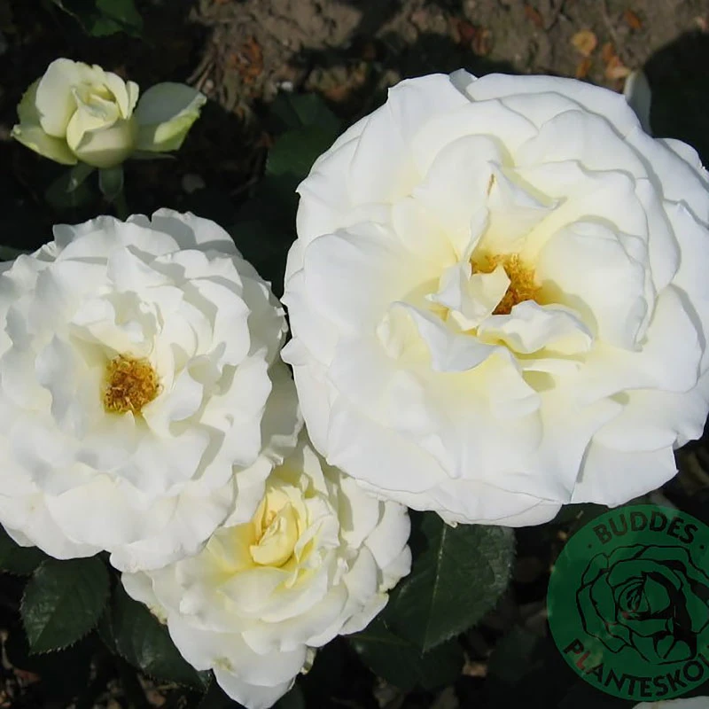 Storblommig rabattros ‘Memoire’ med buskigt växtsätt. Ca 70 till 100 cm hög. Bladen är stora, blankt mörkgröna. Blommorna är stora, fyllda, rent vita och har mild doft. Blommar juli-oktober. Passar utmärkt att plantera att plantera i en rabatt eller i en stor kruka. Fin som snittblomma. Blommar bäst i soliga lägen men kan även placeras i skugga. Plantera gärna i näringsrik, mullrik och väldränerad jord. Beskär på våren.