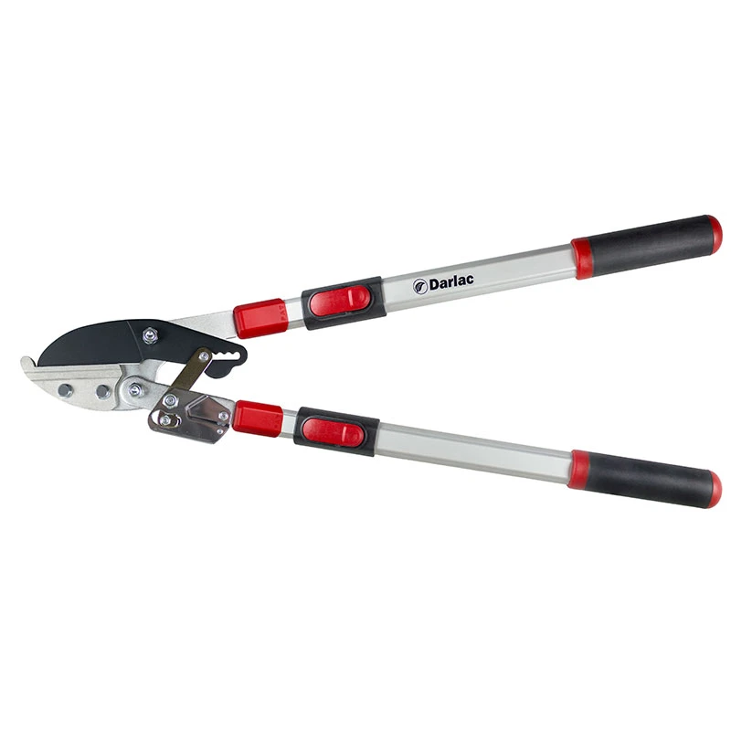 Denna sekatör från Darlac har utväxling för att ge extra styrka vid beskärningen. Aluminiumhandtagen är ovala till formen för att både extra styrka samtidigt som de är lättviktiga och ergonomiska. Med ett enkelt knapptryck kan handtagen förlängas med teleskopfunktionen från 67 till 101 cm.