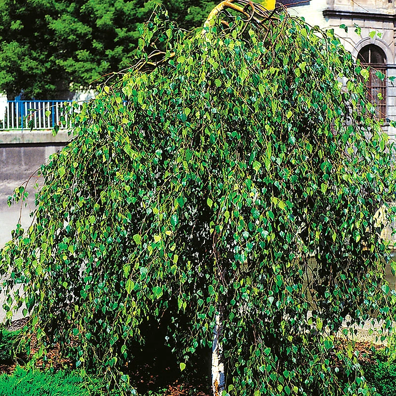 Tårbjörken har en kraftigt hängande krona som breder ut sig horisontellt.
