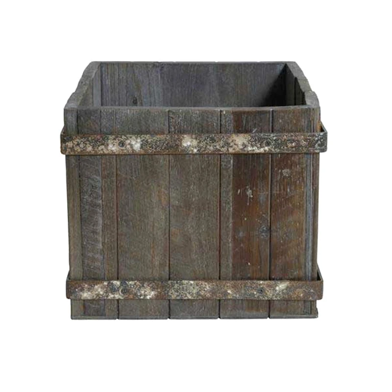 “Gammaldags kruka” för plantering av växter i kraftigt trä med järnbeslag. Förstärker känslan av vintage och ger en rustik känsla. Perfekta till buxbomsklot eller gräs på din uteplats eller entré.