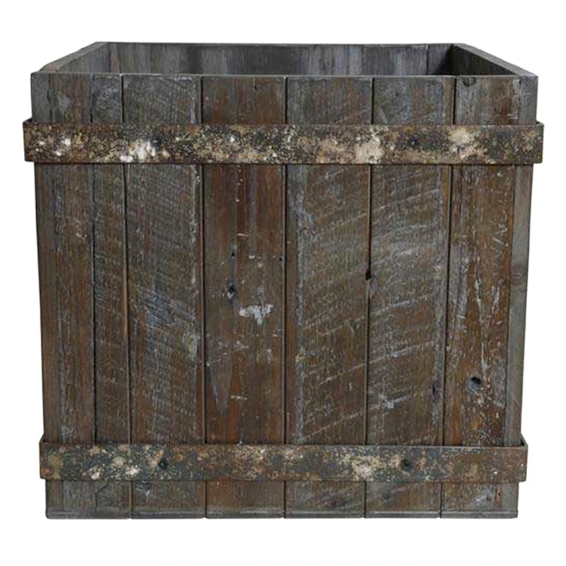 “Gammaldags” fyrkantig träback med järnbeslag. Träbacken för vackra blommor på uteplatsen eller entrén. Förstärker känslan av vintage känsla. Perfekta till buxbomsklot eller gräs på din uteplats eller entré.