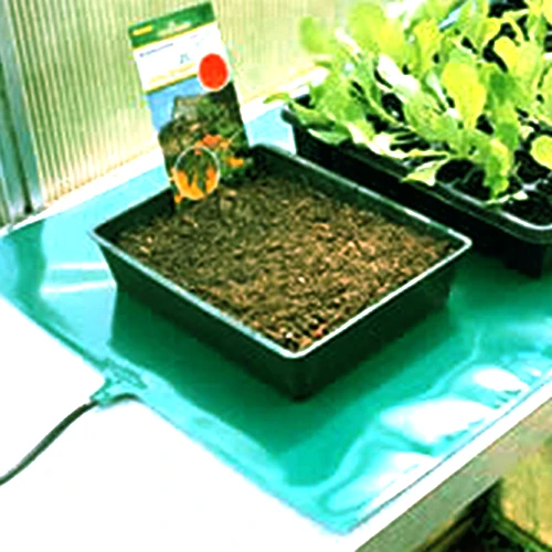 Lägg gärna värmemattan på en frigolitskiva eller liknande så att värmen avges uppåt. Placera sedan krukor eller odlingsbrickor och brätten direkt på mattan.