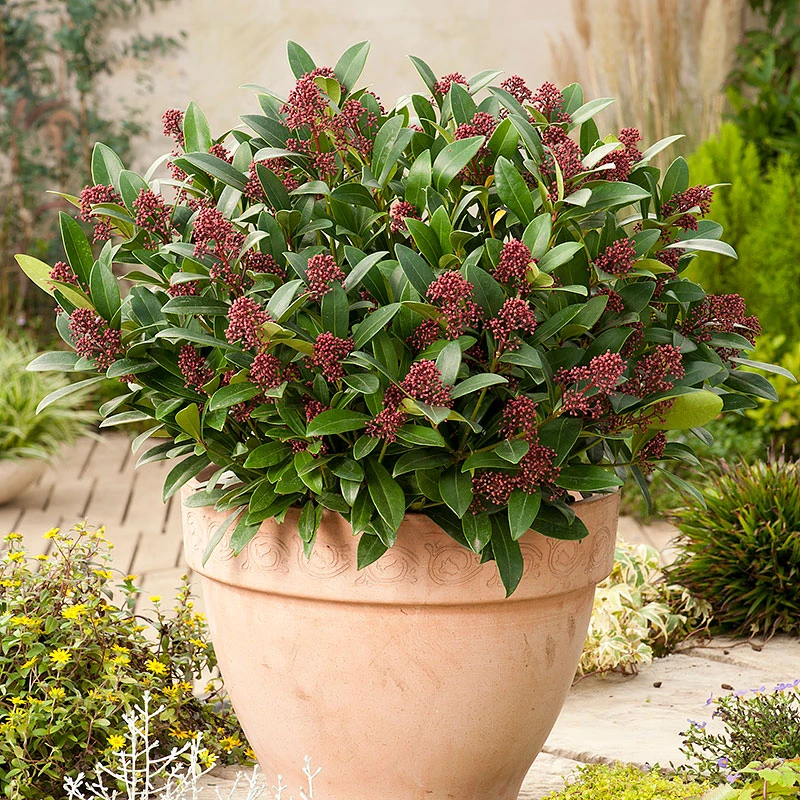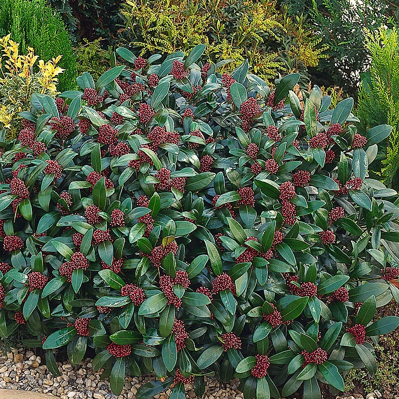 Vetenskapligt namn: Skimmia japonica ‘Rubella’